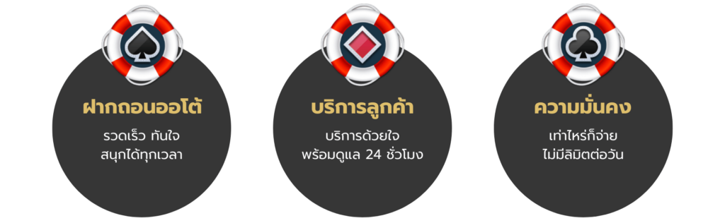 ตอบ : ช่วยให้คุณบริหารจัดการเงินทุนได้อย่างอิสระครับ เริ่มต้นเดิมพันเพียง 1 บาทก็ทำได้ (ไม่มีขั้นต่ำ) และด้วยระบบ ฝากถอนออโต้ ที่ประมวลผลภายใน 10 วินาที ทำให้คุณไม่ต้องรอคิวแอดมิน ได้เงินไวทันใจแน่นอนครับ